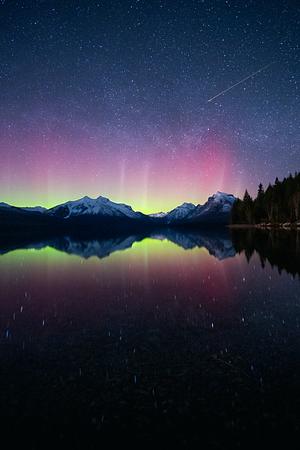 Aurora & Shooting Star | Glacier National Park